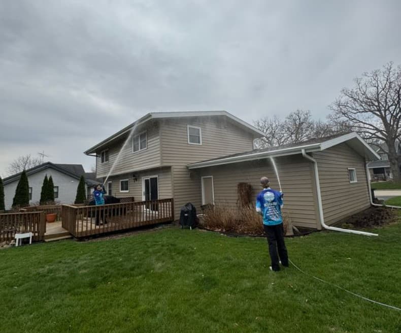 Simmons Power & Soft Washing provides top rated exterior house washing services throughout Lake and McHenry County using advanced low-pressure soft washing methods designed specifically for residential surfaces. Instead of blasting siding with harsh pressure, our process combines specialized cleaning solutions with a controlled rinse to break down algae, mildew, dirt, and atmospheric pollution that accumulate on homes throughout northern Illinois.